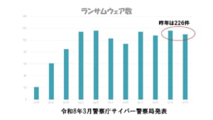 警察庁が公表した2025年のサイバー脅威情勢によれば、ランサムウェア被害は226件とされ、「高止まり」という表現が用いられている。